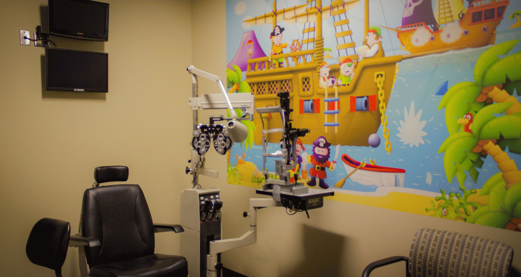 - If dilating drops are required, we have a dedicated kids' waiting room for you to visit, complete with toys and movies, while you wait for the drops to take maximum effect (typically 30 minutes).